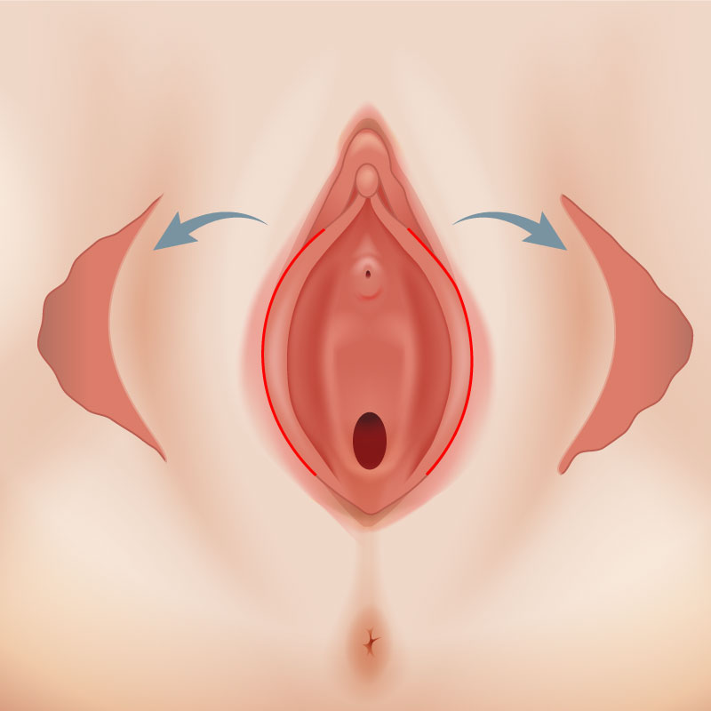 程よい膨らみのある大陰唇ですが、はみ出す部分が多かったり、しわが多い場合 に余分な皮膚を切除して、大きさを整えることができます。