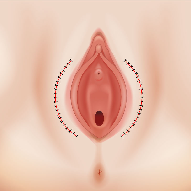 手術では余分な小陰唇を切除し、大きさと形を美しく整えて縫い合わせます。