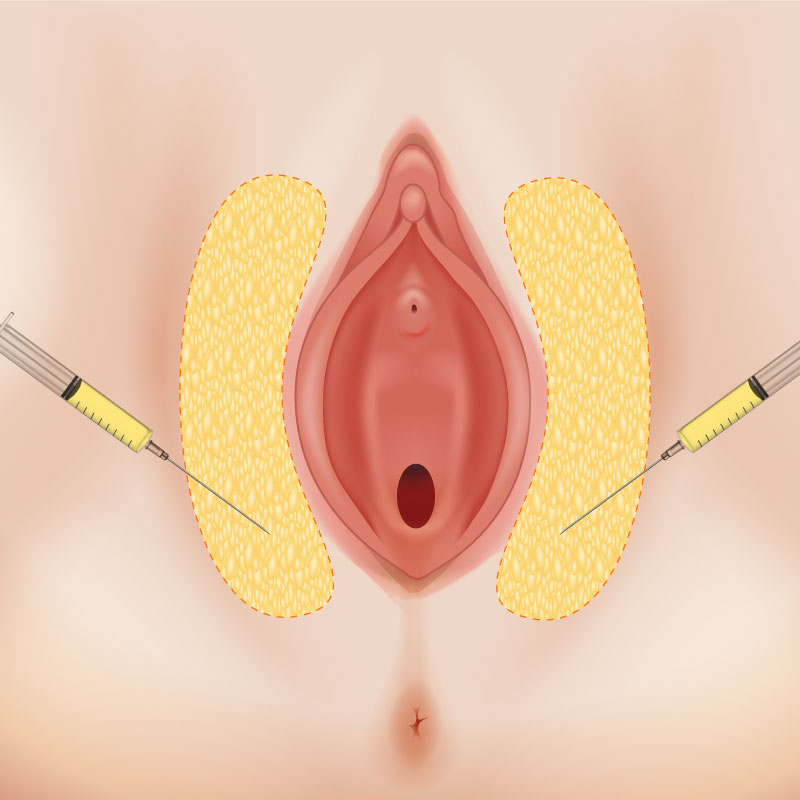 大陰唇増に脂肪を注入することで形を整え、ふっくらとした見た目を取り戻すことができます。