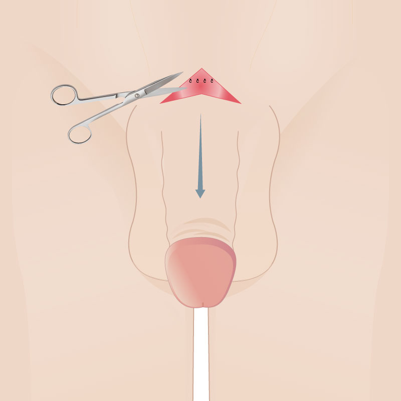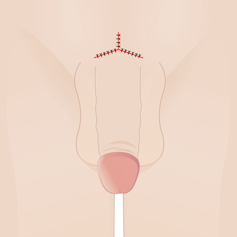 ペニスの根元を切開して引き出すため、施術跡は毛の中に隠れます。